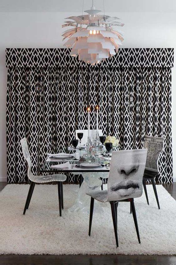 O altă caracteristică este aspectul dramatic al decoraţiunilor: supradimensionate, metalice, lucioase, adesea în perechi. Acest lucru se aplică şi în cazul mobilierului, pentru a menţine simetria. Nu uita de oglinzi. Ele trebuie să fie spectaculoase, în forme inedite sau în rame extravagante.