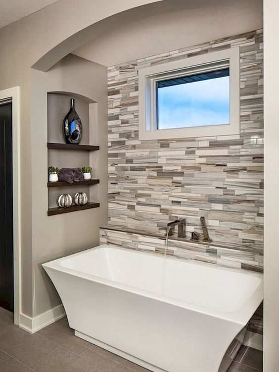 Cele mai multe băi au pereții acoperiți cu faianță. Cu un rol atât estetic (reflectă lumina și dă impresia de mai mult spațiu), cât și practic (se curăță ușor), alegerea faianței pentru pereții din baie poate implica nenumărate combinații.
