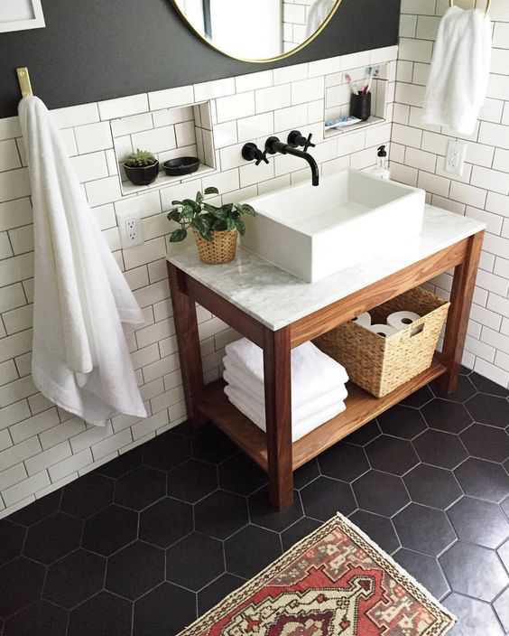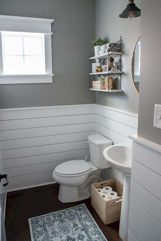 De la varianta faianță de jos până sus la împărțirea pereților în două zone (sau culori), separate de o culoare neutră sau la existența unui model anume (de exemplu, ceva de inspirație marină), varietatea de idei pentru amenajarea pereților băii se poate întinde la infinit.