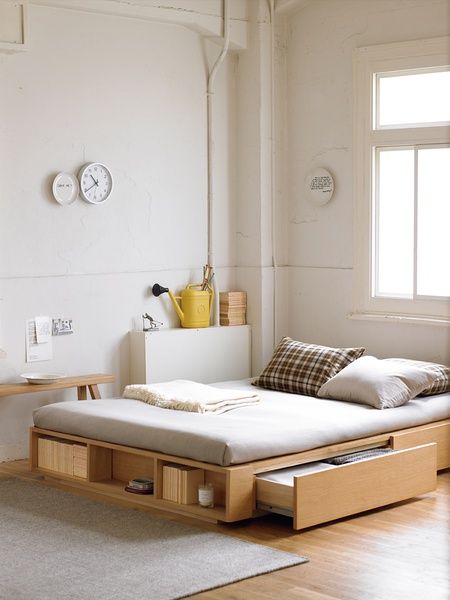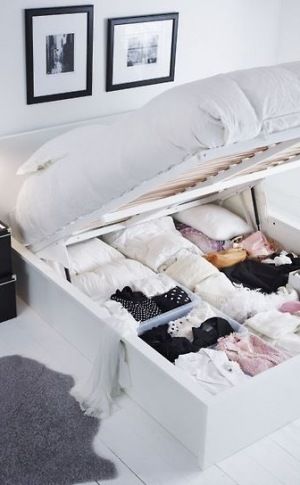 Şi în dormitor e indicat să foloseşti organizatoare. Pentru a păstra mai bine lenjeria, ciorapii, curelele, bijuteriile şi alte accesorii, foloseşte cutii separate pentru fiecare sau organizatoare din plastic ce aplică paravane in cruce, pentru separarea categoriilor. Organizatoarele cu model de buzunar pot fi agăţate şi de uşă, atâta timp cât spaţiul o permite. În plus, poţi folosi huse şi saci de vidat pentru o mai buna organizare a hainelor. Pantofarul clasic poate fi eficientizat cu ajutorul unui suport etajat pentru fiecare pereche de pantofi, mai puțin pentru cizme. Dacă iți dorești intimitate, poți delimita dormitorul cu ajutorul unui paravan ornamental, unei biblioteci sau a unui dulap.