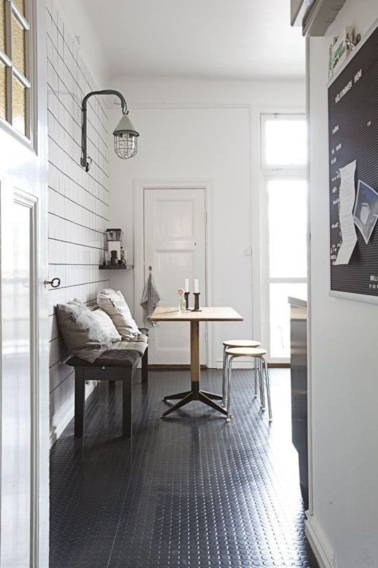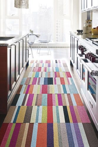 Pentru un aspect modern, specialiștii în design interior te sfătuiesc să folosești selectiv mocheta în bucătărie, doar într-o anumită zonă a încăperii și nu pe toată suprafața acesteia, ca în imaginea de mai jos: