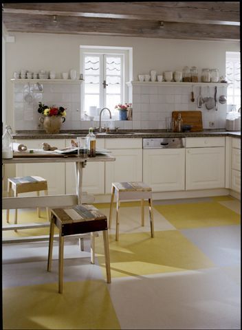 Ca finisaj pentru pardoseală, linoleumul este foarte fin, se simte plăcut la atingere, este ușor de curățat și foarte rezistent la apă. În plus, dacă ar fi să ne raportăm la preț, în comparație cu alte finisaje pentru pardoseala bucătăriei, linoleumul este extrem de accesibil.