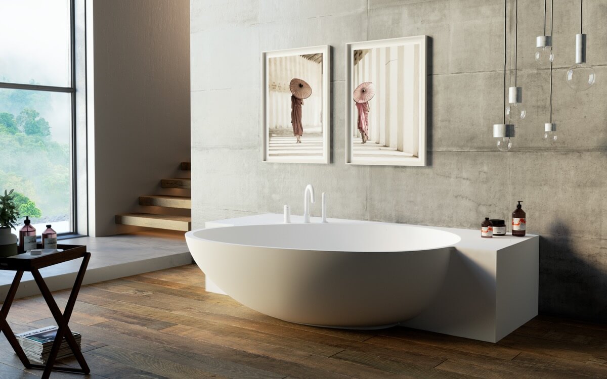 De exemplu, o astfel de cadă de baie cu linii simple se potrivește de minune într-un spațiu luminos și intim, perfect pentru a induce o stare de relaxare deplină.