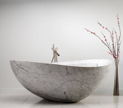 Inspirate de băile din Roma Antică, aceste căzi de baie din piatră sunt piese unicat, pentru realizarea cărora e necesară o cantitate de muncă impresionantă, însă rezultatul este spectaculos în aceeași măsură.